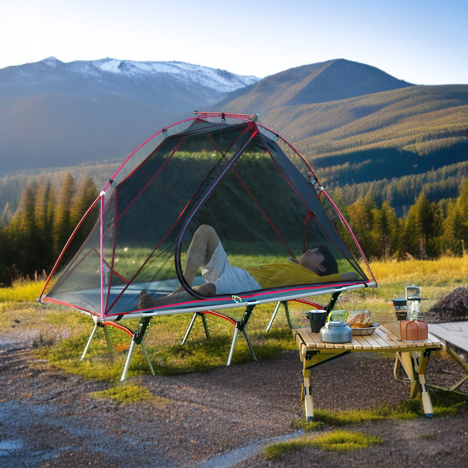 ● Lightweight aluminum alloy frame ensures easy portability and quick setup, making it the ideal choice for solo camping trips and hiking excursions.